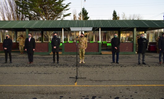 Se realizó una formación militar en la Plaza de Armas "Cabo Post-mortem José Honorio Ortega" de la Guarnición del Ejército de Río Gallegos.