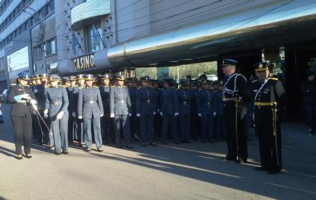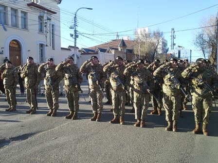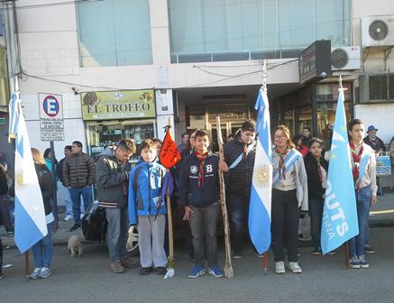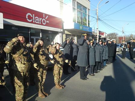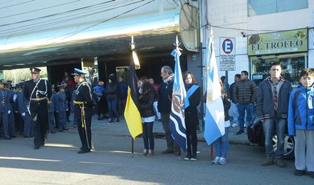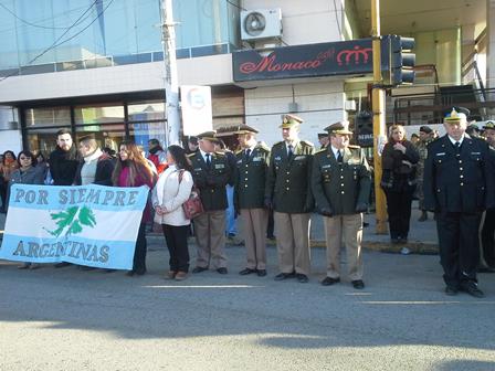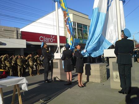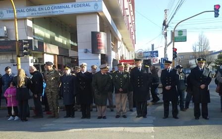 Este mediodía el mástil mayor de la ciudad de Río Gallegos, en el marco de los 201º aniversario de la Independencia de nuestro país, estuvieron presentes de integrantes de las distintas fuerzas de seguridad, armadas y de la Policía de la Provincia.