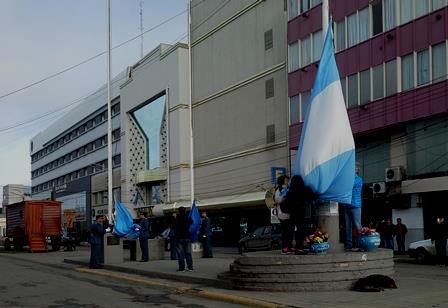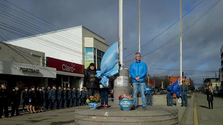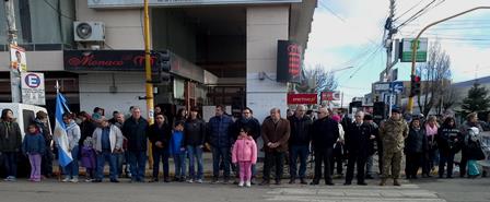 Como es la costumbre, minutos antes del medioda se concentraron vecinos de nuestra ciudad, frente al mstil mayor de la ciudad de Ro Gallegos, as como el propio intendente, Roberto Giubetich, integrantes del ejecutivo municipal, entre otros para entonar la cancin Aurora, mientras se izaba el pabelln nacional.