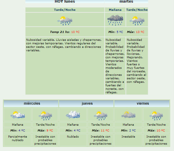 El ente nacional del clima inform que en casi toda la semana habrn precipitaciones para la capital santacrucea. Luego de un fin de semana con fuertes vientos, la lluvia y el fro nuevamente en el cielo riogalleguense. MIRE EL PRONOSTICO EXTENDIDO