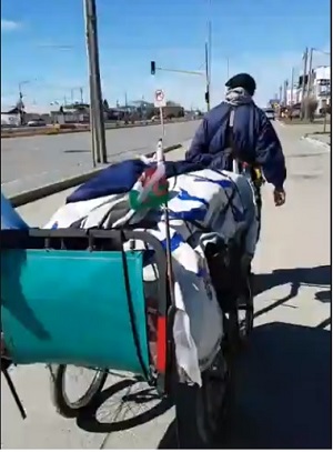 Martín Echegaray Davies salió de Chubut el 24 de Octubre, haciendo dedo con un catre de campaña, hecho carro, para llegar a lo que sería su punto de partida, Ushuaia.