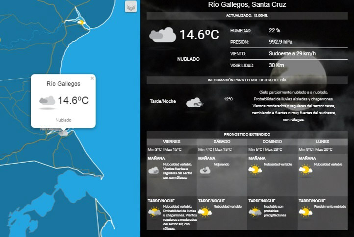 El ente nacional del clima anunci un fin de semana agradable para Ro Gallegos. Con mximas que superarn los 20, la ola de calor continuar para la capital santacrucea durante el fin de semana largo, en el que se celebra el tradicional Carnaval. MIRE EL PRONOSTICO EXTENDIDO