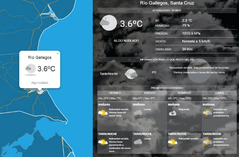 El Servicio Meteorolgico Nacional pronostic lluvias para Ro Gallegos durante el fin de semana. MIRE EL PRONOSTICO EXTENDIDO
