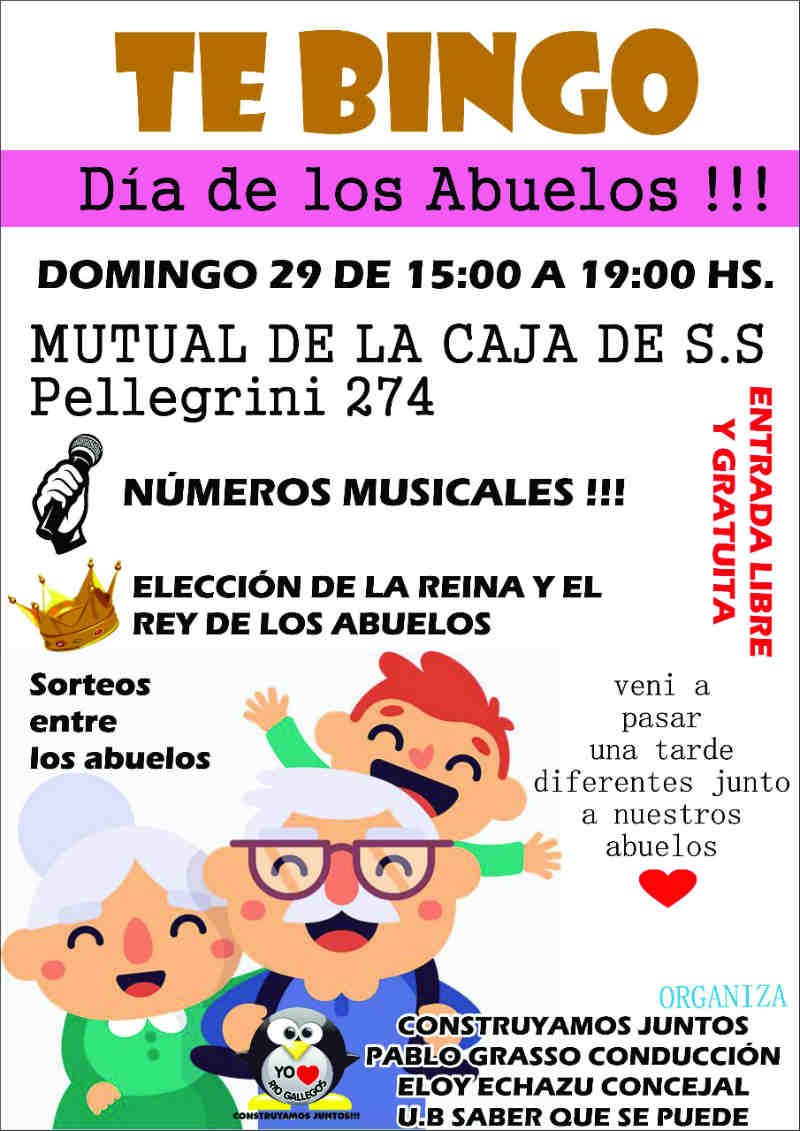 Cabe destacar que la entrada es totalmente gratuita e invitan a todos los abuelos riogalleguenses a ser parte de estos festejos en el Quincho de la Mutual de la MPCSS, desde las 15:00, sito en calle Pellegrini 274.
