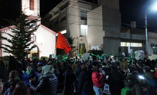 La “Ola verde” se sintió en la capital de Santa Cruz con bombos, banderas, pancartas, canticos y véngalas, más de un centenar de personas, de todas las edades, se concentraron en Kirchner y San Martín, para apoyar la ley por la despenalización del aborto, la cual está siendo debatida en estos momentos en el Senado de la Nación.