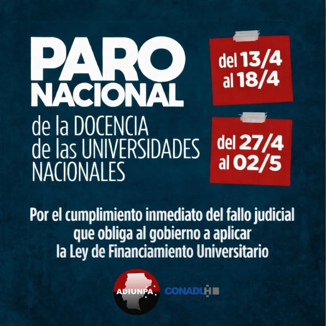 Bajo la consigna "La Universidad Pblica se defiende", los gremios docentes denunciaron una situacin crtica producto del recorte presupuestario. "No vamos a aceptar el ajuste ni el vaciamiento de la Universidad Pblica", manifestaron a travs de un comunicado, enfatizando que la crisis actual pone en riesgo el derecho constitucional a la educacin.