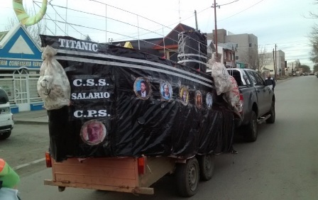 Rio Gallegos | La marcha contra el Gobierno Provincial tuvo la peculiaridad de contar con una representacin del Titanic, con Alicia Kirchner y Mauricio Macri interpretando la clsica escena de la pelcula.