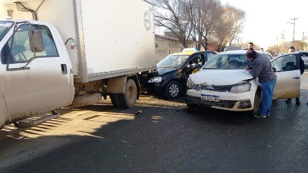Rio Gallegos | Sucedi en Jofr de Loaiza y Alfonsn. All chocaron un Gol Trend, al mando de una mujer y un taxi, conducido por un hombre, quien termin su marcha impactando contra un camin que se encontraba estacionado.