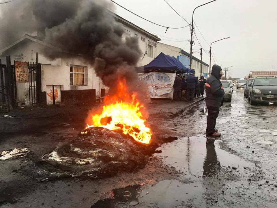 Rio Gallegos | Municipales continan efectuando medidas de fuerza reclamando el pago de la primera cuota del Sueldo Anual Complementario, ante un municipio ausente de toda noticia. El intendente Giubetich viaj a Buenos Aires en busca de los fondos para afrontar este primer pago. Aun no hay ni una sola informacin oficial. Ayer, el secretario del SOEM dijo en una entrevista radial que este lunes "recrudecern" la medida de fuerza si no se informa una fecha de pago; a lo que se suma el pago del sueldo de julio junto con el aumento negociado en la paritaria.