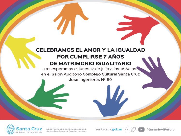 Rio Gallegos | El Ministerio de Desarrollo Social, a travs de la Secretaria de Derechos Humanos celebra 7 aos de la sancin de la Ley que permite un trato igualitario y proteccin de derechos del colectivo LGTB.
