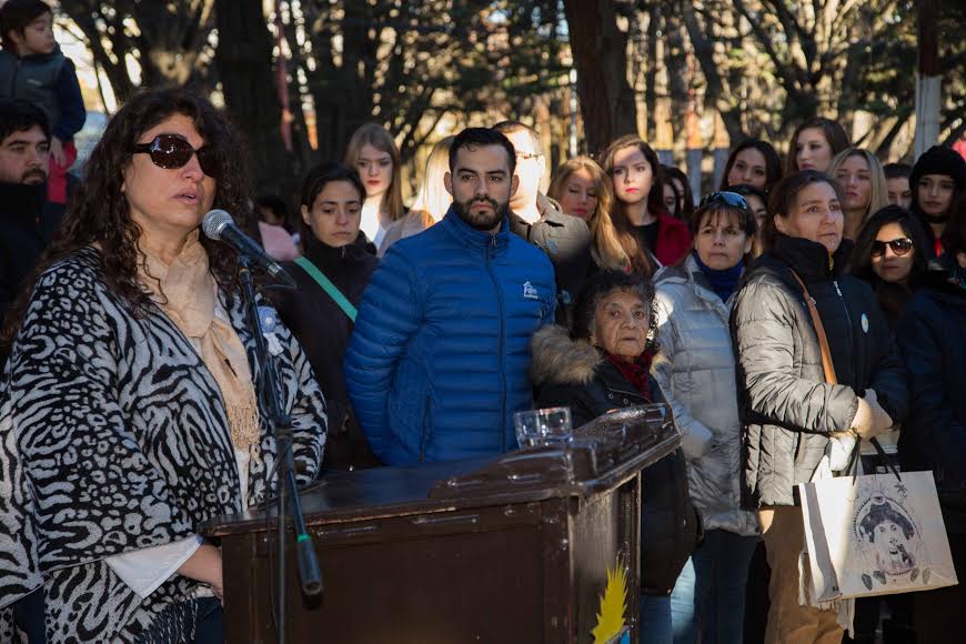 Rio Gallegos | Ana Mara Ianni, durante el discurso del acto protocolar por el 201 Aniversario de la Independencia; haciendo un fuerte reclamo a las polticas sociales y econmicas del Gobierno Nacional. El acto estuvo presidido por el Intendente Javier Belloni, junto a todas las autoridades del Ejecutivo, Legislativo y de las Fuerzas Armadas y de Seguridad.