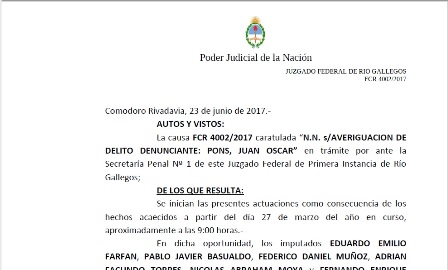 Rio Gallegos | Fue por los hechos ocurridos el 27 de Marzo, en la empresa YCRT y que fueron denunciados por Juan Pons, en su momento, en la Secretara Penal N 1 de este Juzgado Federal de Primera Instancia de Ro Gallegos. Cristian Olivia, secretario general normalizador de ATE Ro Turbio dialog con TNRG sobre este fallo y asegur en relacin a YCRT: es a lo que estn acostumbrados a hacer los de esta intervencin, denunciar, acusar y no dar la cara o al menos salir pblicamente y decir que se han equivocado.