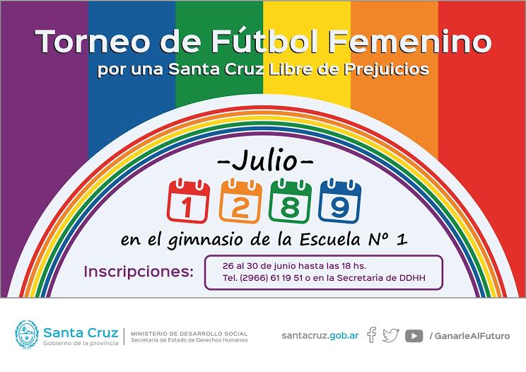 Rio Gallegos | El Gobierno de Santa Cruz, a travs de la Secretara de Estado de Derechos Humanos, dependiente del Ministerio de Desarrollo Social te invita a participar de un torneo de ftbol femenino a realizarse en el gimnasio de la Escuela N 1.