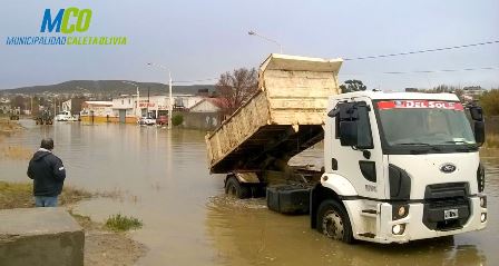 Rio Gallegos | La constante lluvia cada durante las ltimas horas afect varios sectores de la ciudad ante lo cual la Municipalidad a travs de sus distintas reas desarroll una serie de tareas en puntos crticos como en inmediaciones del B Perito Moreno, para lo cual se cont con camiones y maquinarias municipales y privadas.