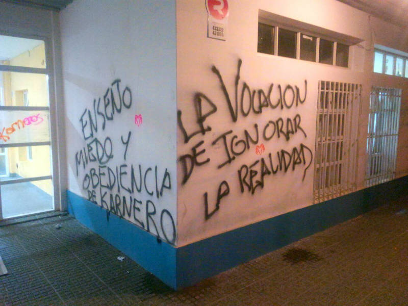 Rio Gallegos | Las Escuelas Primarias 47, 62, 78, 46, 70, y Jardn 35 de la capital provincial, amanecieron hoy con diversas pintadas. Aun sigue la crisis educativa en la provincia de Santa Cruz y hoy se traslad a hechos vandlicos.