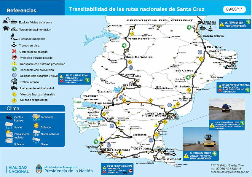 Rio Gallegos | Javier Delgado titular de la delegacin de Vialidad Provincial en 28 de Noviembre dio cuenta de las tareas realizadas en estos ltimos das y anunci la metodologa de trabajo a implementar en el caso de nevadas que afecten el estado de las rutas. As mismo, expuso que se est actuando en conjunto con los municipios de la Cuenca.