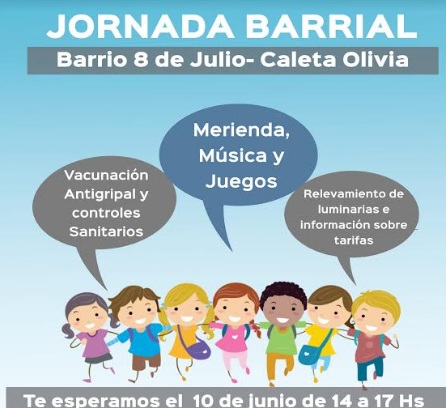 Rio Gallegos | El sbado 10 de junio vecinas y vecinos de los Barrios Esperanza y 8 de Julio de la localidad de Caleta Olivia podrn participar de las Jornadas Barriales organizadas por el Gobierno de la Provincia de Santa Cruz.