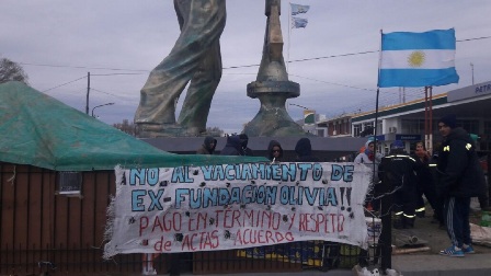 Rio Gallegos | En este viernes gris, la ex Fundacin Olivia est llevando adelante un nuevo da de acampe en la plaza central del Gorosito. La imagen que se pudo observar en el mes de mayo se repite ya que otra vez los trabajadores reclaman el pago adeudado de dos meses.