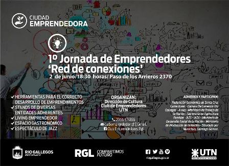 Rio Gallegos | Con la participacin de organismos estatales, privados y emprendedores que disertarn sobre sus proyectos, el 2 de junio desde las 14 Hs, se llevar la primera jornada para emprendedores Red de conexiones donde se expondrn las fuentes vigentes de financiamiento y asesoramientos para la ejecucin de los distintos proyectos que estn planificando.