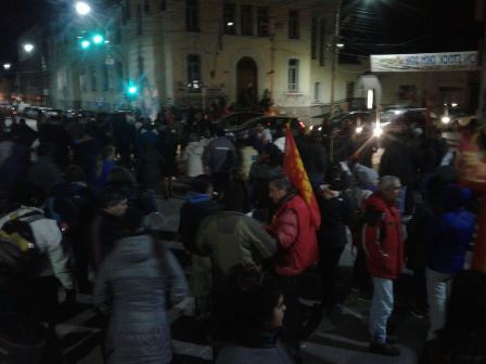 Rio Gallegos | Un extenso conflicto genera un sin nmero de situaciones. Es el caso de un trabajador de seguridad que debi ser atendido por personal mdico, al intentar impedir el ingreso de manifestantes: abr el portn negro de la parte posterior y se acercaron manifestantes de ADOSAC y empezaron a empujar.