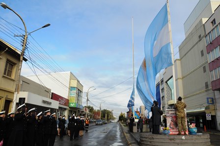 Rio Gallegos | Hoy, a partir de las 12hs., en la esquina de las avenidas San Martn y Pte. Kirchner, se realiz la dcimo novena edicin del tradicional izamiento dominical, acto cvico que todos los domingos convoca a muchos vecinos de la ciudad, para mantener viva esta costumbre tpica de Ro Gallegos.