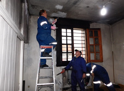 Rio Gallegos | Personal del rea de Tareas Generales del Instituto de Desarrollo Urbano y Vivienda (IDUV) comenz trabajos de mantenimiento general, en la oficina del Tribunal de Cuentas, que se incendi a raz de la afectacin de un tendido elctrico precario.