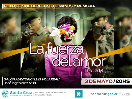 Rio Gallegos | El Gobierno de la Provincia de Santa Cruz, a travs de la Secretara de Estado de Derechos Humanos, invita a participar de la proyeccin de la pelcula La fuerza del amor (The Lady), una coproduccin franco-britnica de 2011, dirigida por Luc Besson.