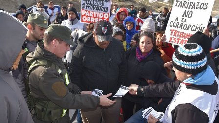 Rio Gallegos | La llegada de gendarmes de lite con la misin de impedir que fuera bloqueada la Ruta 3 en el acceso norte a la ciudad del Gorosito no disuadi a unos 200 manifestantes quienes decidieron desplazarse hasta el acceso sur para plantar un piquete durante dos horas.