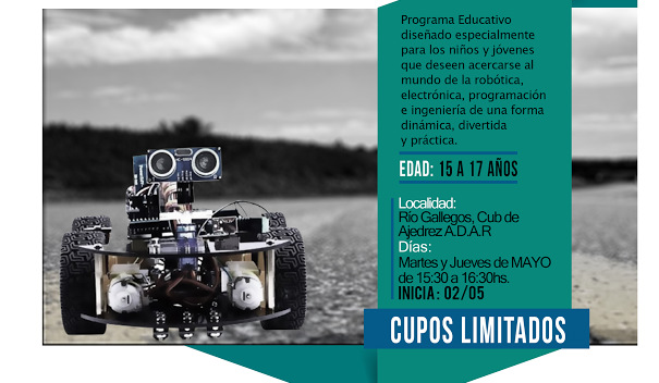 Rio Gallegos | El prximo martes 2 de mayo comenzar el taller de "Robtica para jvenes", dictado por el ingeniero Mauro Ziehlke, con una duracin de ocho jornadas para las cuales no se requiere conocimiento previo, solo ganas y predisposicin de acceder a nuevas tendencias que nos ofrecen los avances tecnologcos para desenvolvernos en la vida cotidiana, dijo el disertante.