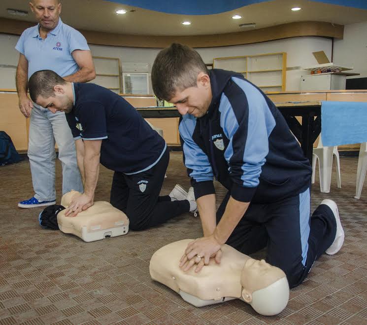 Rio Gallegos | Jugadores y cuerpo tcnico Celestes participaron de una capacitacin de Reanimacin Cardiopulmonar en el natatorio Wenceslao Peisci, la cual estuvo a cargo del instructor Gonzalo Simn de la Asociacin Tcnicos en Emergencia (ATEM) en el marco de la iniciativa impulsada desde la Asociacin de Clubes que ya pas por otros equipos y en la tarde de ayer lleg a Ro Gallegos.