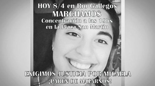 Rio Gallegos | Organizaciones de mujeres convocaron a travs de redes sociales a marchar este sbado a las 20 horas, en todas las plazas del pas en repudio al juez Carlos Rossi por su decisin de liberar al inicio de 2016 a Sebastin Wagner, principal sospechoso de matar a Micaela Garca, cuyo cuerpo apareci en un pastizal de Gualeguay. En Ro Gallegos, las mujeres se reunirn a las 19:00 horas, en la Plaza San Martn, desde donde marcharan hacia el Tribunal Superior de Justicia.