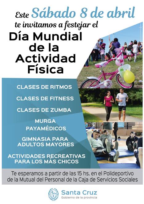 Rio Gallegos | Se llevarn a cabo clases de gimnasia para adultos, clases de zumba, fitness, charlas informativas sobre actividad fsica y alimentacin e implicancias en la Salud a cargo de nutricionistas y entrenadores. Tambin habr stands saludables para que la comunidad pueda vacunarse contra la gripe y los ms chiquitos puedan realizarse controles de peso y talla.