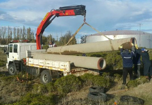 Rio Gallegos | Durante esta jornada, luego de abrir un camino firme y lograr llevar maquinaria pesada al sitio donde se produjo la rotura del acueducto, se trabaj intensamente en la reconstitucin de suelo y traslado de materiales.