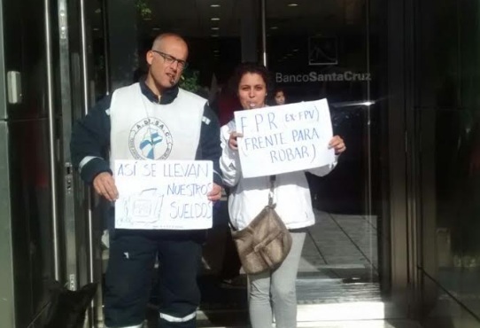 Rio Gallegos | Tas la ratificacin del paro de 120 horas, el sindicato docente llev las medidas de fuerza al Banco Santa Cruz. Se agrava el conflicto en el segundo mes con paro y sin clases.