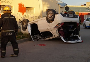 Rio Gallegos | Sucedi esta tarde, en PasajeParaguay de Ro Gallegos. En el lugar el conductor de un Peugeot 308, habra perdido el control de su rodado y volc impactando contra un poste de alumbrado pblico. El chofer quien iba acompaado de dos menores, fue revisado en el lugar por enfermeros del Hospital Regional.