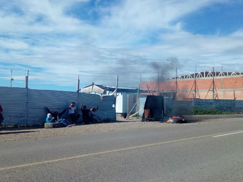 Rio Gallegos | Un grupo de aproximadamente 10 personas reclamaban hoy frente al obrador de la nueva sede del Gremio Petroleros Privados en Pico Truncado, aun inconclusa. Argumentan que el obrador est sin actividad desde diciembre pasado y ellos son contratados por Mara Angeles Quiroga, duea de la empresa de seguridad con domicilio en Caleta Olivia que no les paga hace un mes.