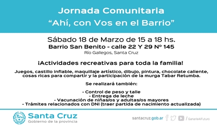 Rio Gallegos | El Ministerio de Desarrollo Social, en un trabajo articulado con los Ministerios de Salud y Ambiente y de Gobierno de la Provincia, repetir la experiencia comunitaria que fue llevada a cabo en el Barrio Madres a la lucha el pasado sbado.
