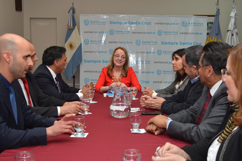 Rio Gallegos | La Gobernadora Alicia Kirchner recibi esta tarde a la delegacin chilena, encabezada por el Cnsul General de ese pas en Ro Gallegos, Jorge Salinas Paredes, a quien acompaaron, el Subsecretario de la Secretara General de Gobierno, Omar Jara; la Gobernadora de la regin de Magallanes, Paola Fernndez Glvez; el Secretario Regional Ministerial del Gobierno de Magallanes, Baldomero Gmez; director de Desarrollo de la Direccin para las comunidades de chilenos en el exterior, Abraham Quezada.