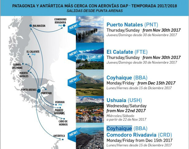 Rio Gallegos | Los vuelos que unen El Calafate con estas dos localidades chilenas comenzarn a operar a fines de noviembre, tal como haban adelantado a este portal el gerente comercial de Aerovas DAP, Roque Palacios San Martn. Sern dos vuelos semanales. Para Aerovas DAP somos una sola Patagonia, dijo el directivo desde Colombia.