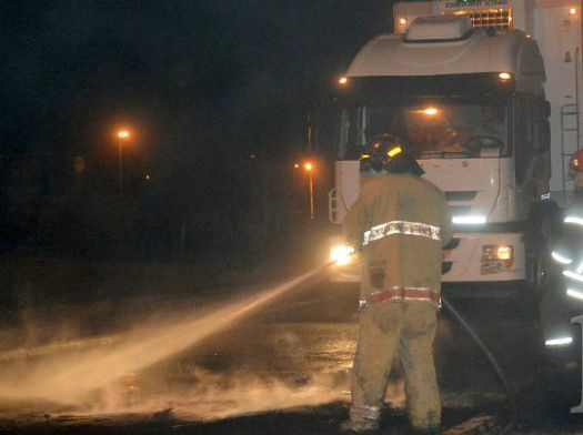Rio Gallegos | Un captulo de mxima tensin se produjo minutos antes de la medianoche de ayer, cuando alrededor de 30 policas del Comando Radioelctrico y de la Divisin Infantera, liderados por oficiales de la Unidad Regional Zona Norte y de la Comisara Seccional Cuarta, se hicieron presentes en el piquete instalado en la Ruta N 3 -acceso Norte - por un grupo de obreros de la "Cooperativa 11 de Noviembre".