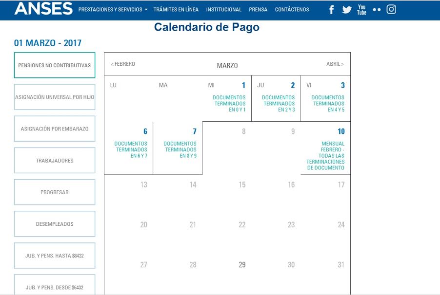 Rio Gallegos | El organismo previsional ha publicado en su sitio web el cronograma de cobro correspondiente a los meses de marzo, abril, mayo, junio, julio y agosto de 2017.