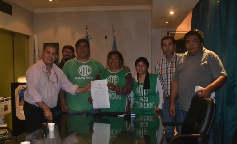 Rio Gallegos | Se realiz en la sala de situaciones de la Municipalidad de Pico Truncado la rubrica del Convenio Integral de Limpieza 2017, mediante el cual se dio por concluida la extensa medida de fuerza protagonizada por los trabajadores auxiliares de la educacin de los diversos establecimientos educativos de la localidad, nucleados en la Asociacin de Trabajadores del Estado.
