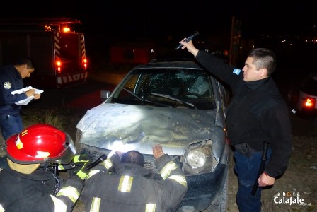 Rio Gallegos | En la ciudad de El Calafate, ayer a la noche, Bomberos y efectivos de comisara acudieron a un siniestro vial protagonizado por una Ecosport que result con importantes daos materiales, pero, afortunadamente sin registrarse heridos.