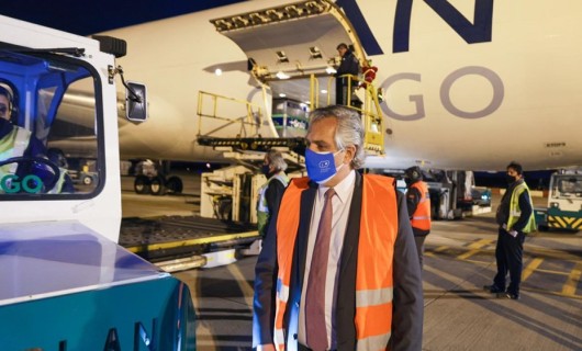 Rio Gallegos | La aeronave Boeing 767, de la compaa Latam Cargo Colombia, aterriz en Ezeiza a las 10 despus de haber partido desde Miami con 1.139.000 dosis de vacunas en sus bodegas.