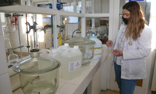 Rio Gallegos | Distintas reas de la Municipalidad de Ro Gallegos trabajan en forma mancomunada para brindar servicios de seguridad sanitaria a los vecinos y al propio personal de la Comuna. Tal es el caso del Laboratorio Municipal que contina produciendo alcohol en gel y sanitizante para manos atento a la importante demanda de dichos elementos.
