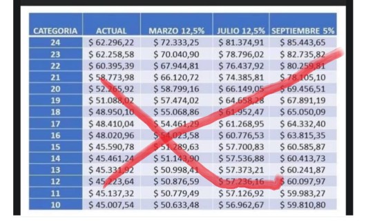 Rio Gallegos | En el da de ayer comenz a circular, en pginas de dudosa procedencia, un cuadro de proyeccin del sueldo de un trabajador municipal de Ro Gallegos que no es acorde con la realidad. TNRG consult con referentes del SOEM que sealaron que la proyeccin brindada es errnea.