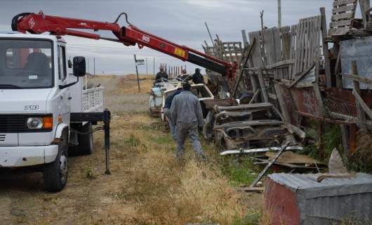 Rio Gallegos | La Municipalidad de Ro Gallegos sigue con el cronograma de levantamiento de chatarra y saneamiento de espacios pblicos en los barrios de la ciudad. La actividad cuenta con el apoyo del Ejrcito Argentino y la empresa Nueva Santa Cruz. El material retirado es compactado y enviado a plantas de reciclado.