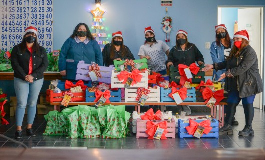 Rio Gallegos | Un importante trabajo de acompaamiento a los vecinos realizan los centros integradores, dependientes de la Secretara de Desarrollo Comunitario del Municipio. En este sentido, esta maana personal del Cenin Nro. 5, -Corrientes y Juan B. Justo- hizo entrega de setenta canastas navideas a familias de su jurisdiccin.