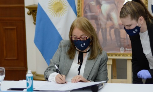 Rio Gallegos | Desde la Sala Gregores de Casa de Gobierno, tambin estuvieron presentes el jefe de Gabinete de Ministros, Leonardo lvarez, el ministro de Economa y Finanzas, Ignacio Perincioli y el secretario de Estado de Modernizacin e Innovacin Tecnolgica, Jorge Naguil.