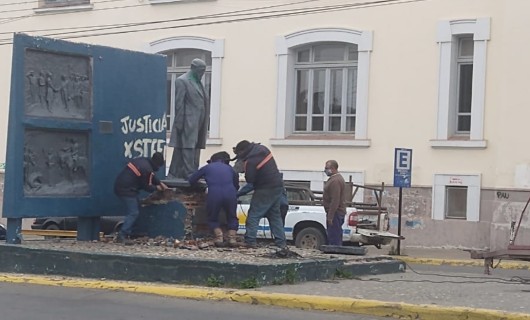Rio Gallegos | En horas de la noche de hoy, personal municipal comenz a retirar el monumento al ex presidente. Posteriormente ser emplazado en otro lugar.